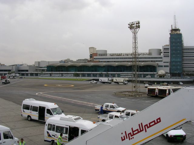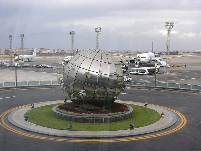 We went upstairs to the very modern and spacious passenger waiting area and found restrooms, a coffee shop and lounge chairs. We got a table and a couple of Egyptian Cokes and sat down to start this journal. After we were done with the majority of this portion of the trip, Gennie and I went to the internet café to send a note to our son Eduardo that we were safe in Cairo.